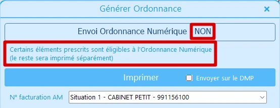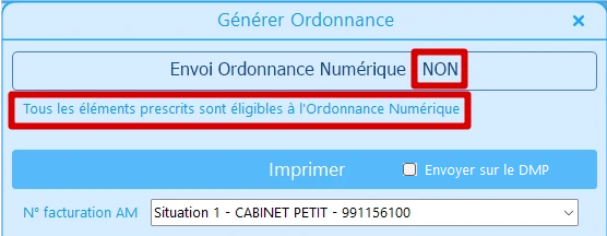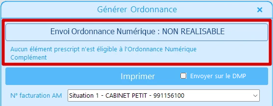Dans cette situation, il n’y a aucun élément dans l’ordonnance éligible à l’ordonnance numérique et donc l’ordonnance numérique est désactivée