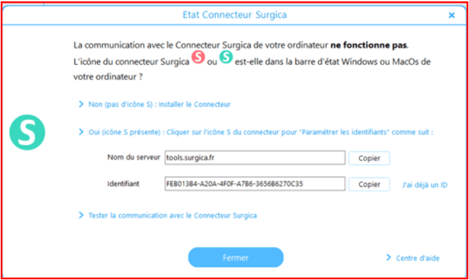 Que faire si la communication avec le connecteur Surgica ne fonctionne pas ?