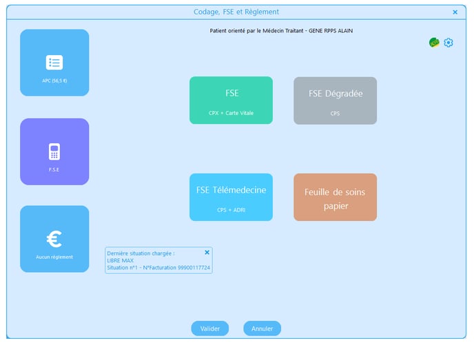 Vérifiez le total de la facture, le dû patient, etc. Puis cliquez sur le bouton Valider.