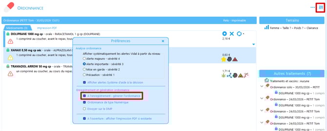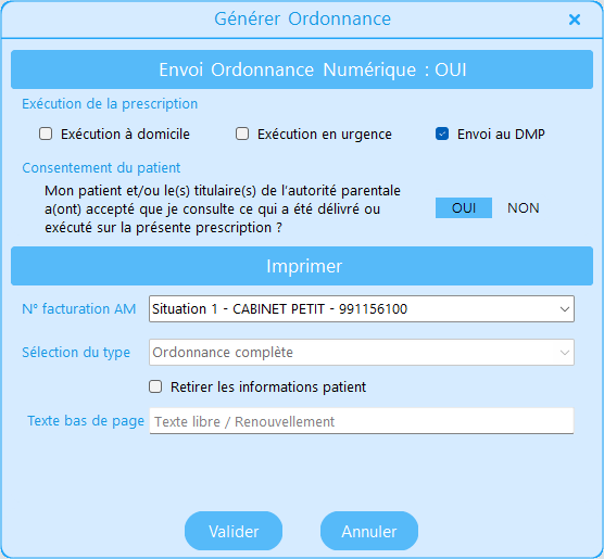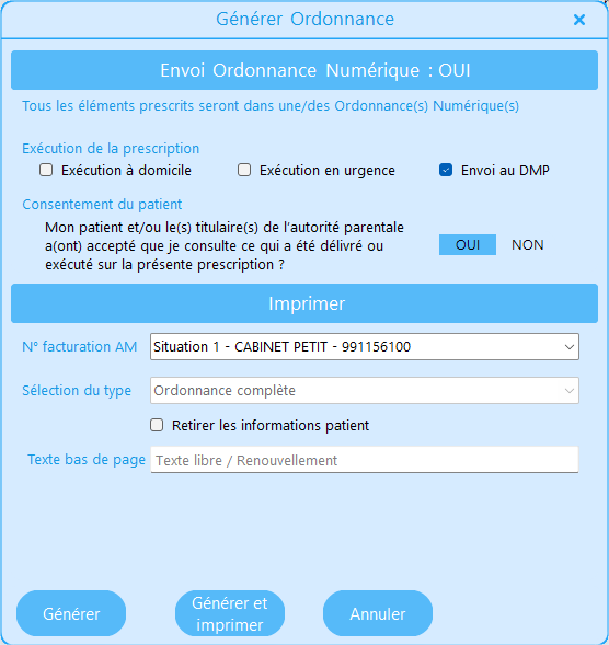 Lors de la génération d’une Ordonnance Numérique, plusieurs options sont disponibles pour personnaliser son enregistrement et son envoi.