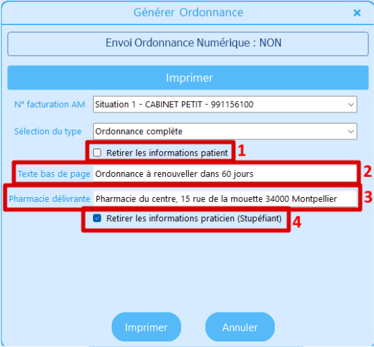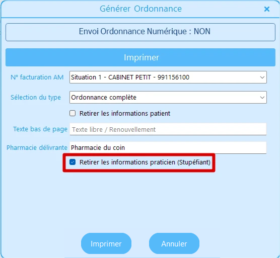 Les informations du praticien ne sont donc pas visibles sur l’ordonnance
